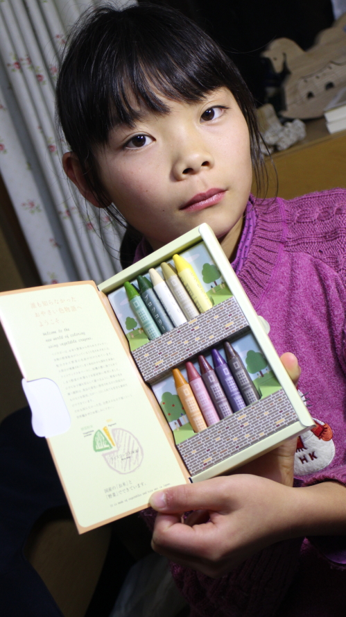 志帆さんの依頼で、青森県にあるクレヨン屋さんから、お野菜で出来たクレヨンが届きました、これがまた、使うにはもったいない位の値段ですが、なかなか良い物なので買いました。早速使っています。紫芋の色がとても ...続きを読む |