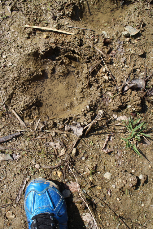 牛舎周辺で岳志が大発見をしました、恐竜の足跡だそうです? |